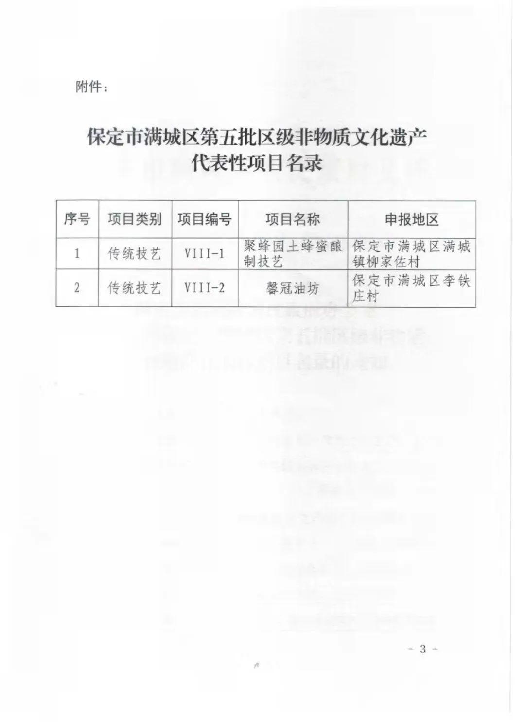 根據(jù)《中華人民共和國非物質(zhì)文化遺產(chǎn)法》《河北省非物質(zhì)文化遺產(chǎn)條例》有關(guān)規(guī)定,經(jīng)個(gè)人自愿申請、文化旅游行政部門逐級審核推薦、組織專家評議、社會(huì)公示等程序,認(rèn)定第五批滿城區(qū)非物質(zhì)文化遺產(chǎn)代表項(xiàng)目的有“馨冠油坊”、“聚豐園土蜂蜜釀制技藝”。